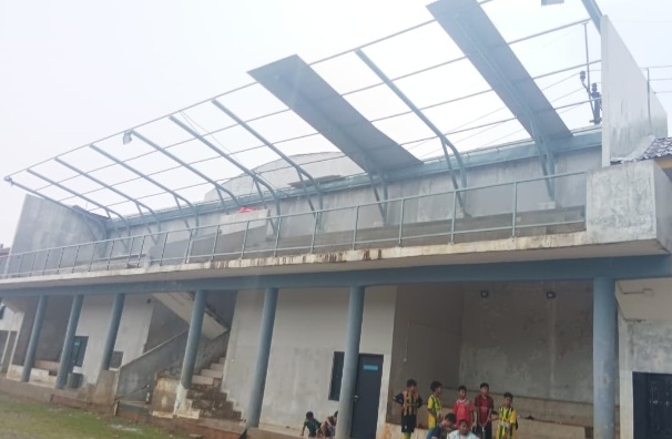 Kerusakan terjadi pada tribun penonton Lapangan Godam, Kelurahan Mampang, Pancoran Mas. Atap tribun Godam berterbangan ketika hujan deras dan angin kencang melanda Kota Depok beberapa waktu yang lalu.