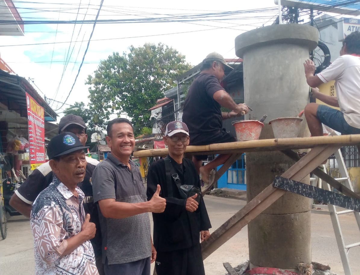 Halaman.co.id |Depok – Patung Tani di Jalan Dongkal, RT 04 RW 03 Kampung Babakan Kelurahan Sukatani, Tapos kembali dibangun setelah beberapa hari sebelumnya rusak karena tertabrak kendaraan roda empat.