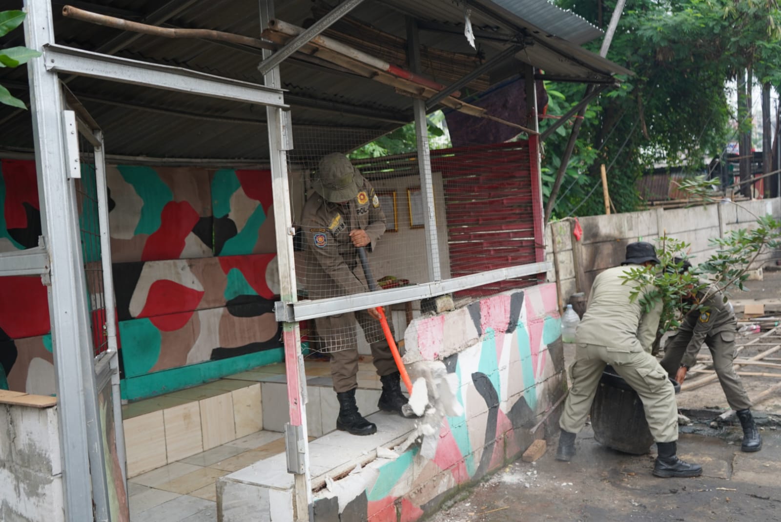 “Sebanyak 21 bangunan semi permanen berhasil dibongkar tim Satpol PP, satu bangunan semi permanen milik Ormas Laskar Merah Putih dibongkar,” tambahnya.