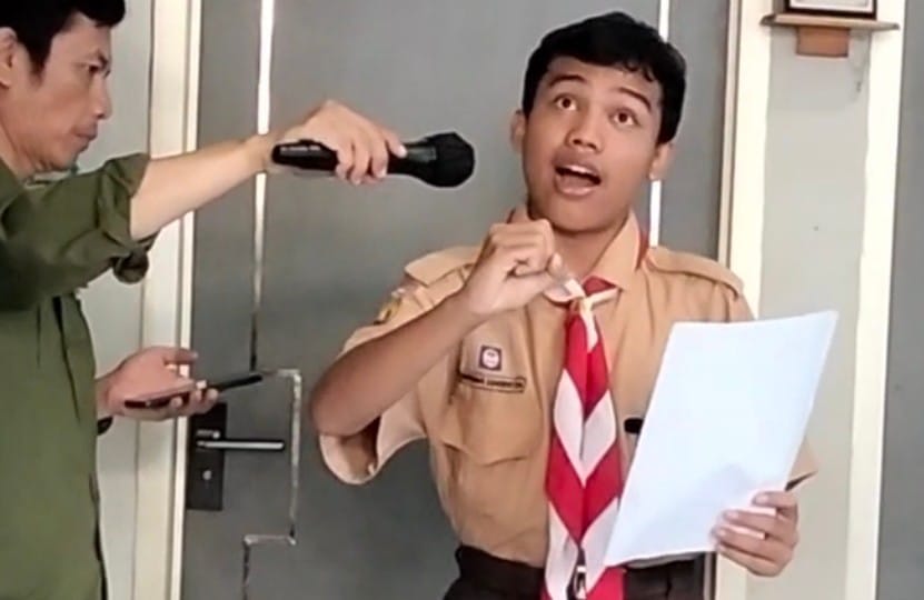 Tak kalah menarik, penampilan pembacaan puisi hasil karya Kepala Sekolah (Kepsek) SMPN 2 Kota Depok, Sumarno dengan judul Sarapan Pagi.